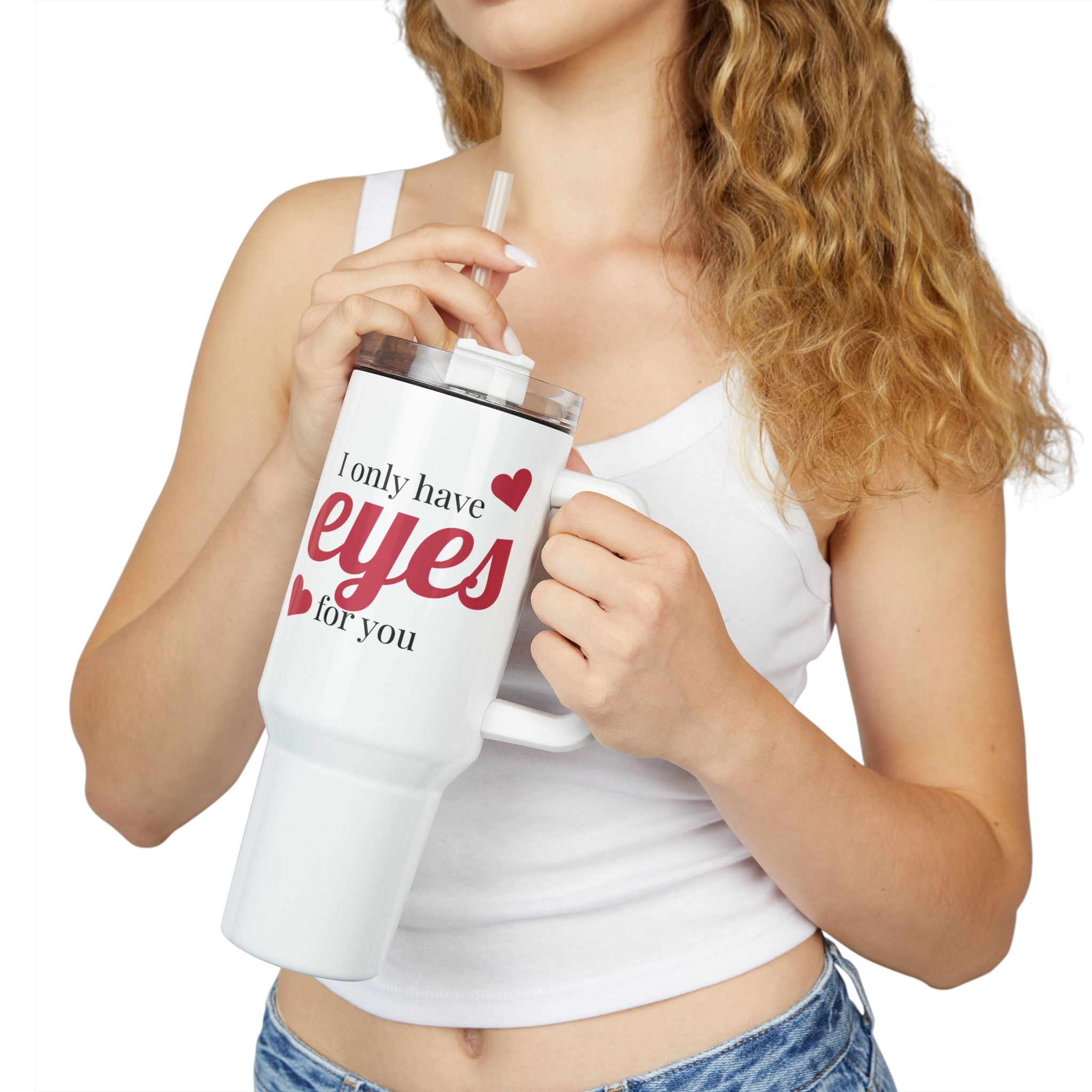 Introducing a vibrant tumbler that adds a splash of color and personality to your hydration routine! With a playful design that features the phrase "I only have eyes for you," this tumbler radiates love and positivity, making it a perfect companion for anyone looking to brighten their day. Ideal for romantic occasions like anniversaries or Valentine's Day, this tumbler appeals to couples and individuals alike. Whether at the office, gym, or on a cozy day at home, it keeps your drinks at the perfect temperature for hours, ensuring you stay refreshed. Treat yourself or gift it to someone special to celebrate love and connection.